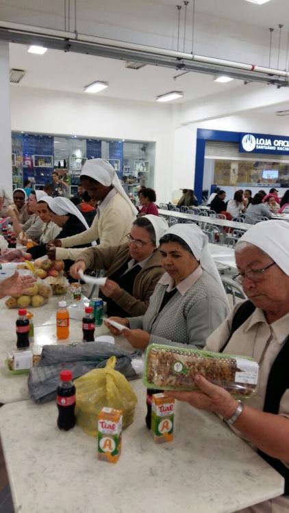Como conclusão do Capítulo da Misericórdia e, em comunhão com a proposta do Conselho Geral, fomos em PEREGRINAÇÃO ao Santuário Nacional da Mãe Aparecida. Participamos da Celebração Eucarística. Na visita à imagem tínhamos a comunhão de intenção: agradecer pela ação misericordiosa de Deus em nós, na nossa Província e de todo o Instituto e para pedir que a Maria, nossa Mãe Especialíssima, continue nos cobrindo com o seu manto de amor e ternura e provendo junto ao seu Filho Jesus, pelas necessidades desta província a ela dedicada.