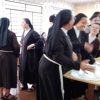 Depois da comunhão cada irmã recebeu individual e pessoalmente a Constituição, com uma pequena exortação para acolhê-la com fé e vivê-la na fidelidade já assumida no dia da Primeira Profissão. E, o nosso sim se expressava no beijo que dávamos nas constituições. Emocionante foi quando, Ir. Madalena Melo, a Irmã mais idosa e Ir. Suellen Simões, a irmã mais jovem, foram convidadas a receberem em primeira mão, o documento. Que a exemplo de Maria, a Imaculada, sejamos fiéis ao que professamos.
